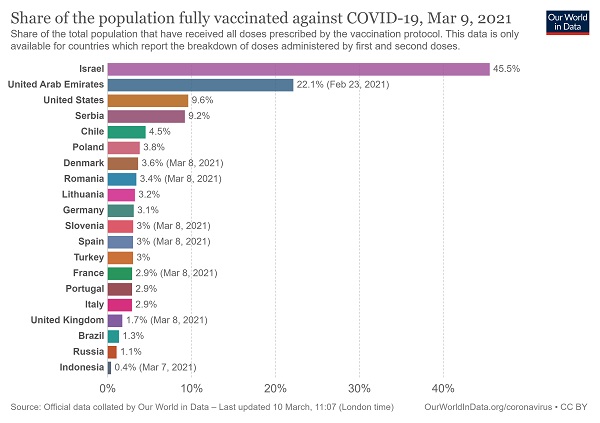 Furthermore, we’re still way behind many countries in having the population fully vaccinated. The latest statistics, thanks to Our World in Data, show Britain in 17th place.